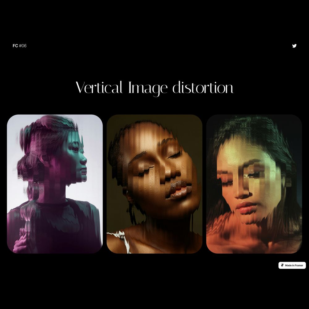 A webGL component featuring a Vertical Image Distortion. You can customize the pause duration, the effect duration, the strength distortion and the speed wave effect Stack : React & React Three Fiber. LIVE DEMO Refund Policy Due to the nature of digital products and Framer, there are no refunds once a purchase is made. We recommend reviewing the product details and any available previews carefully before making a purchase.