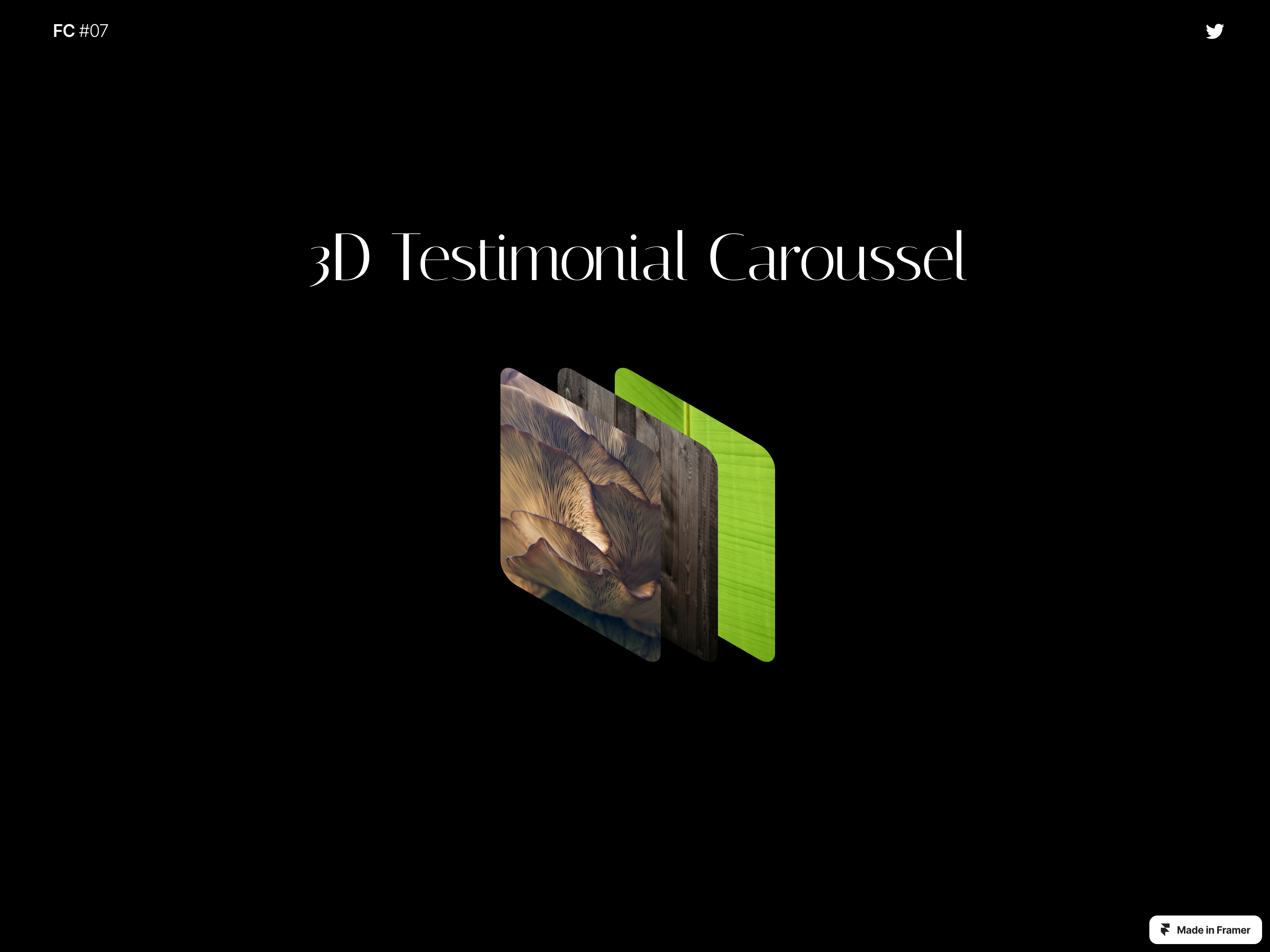 A 3D Testimonial Caroussel Using 3D transform on Click. It showcase 3 Cards with 3 testimonials. Feel free to use it for other purposes. Live demo Refund Policy Due to the nature of digital products and Framer, there are no refunds once a purchase is made. We recommend reviewing the product details and any available previews carefully before making a purchase.