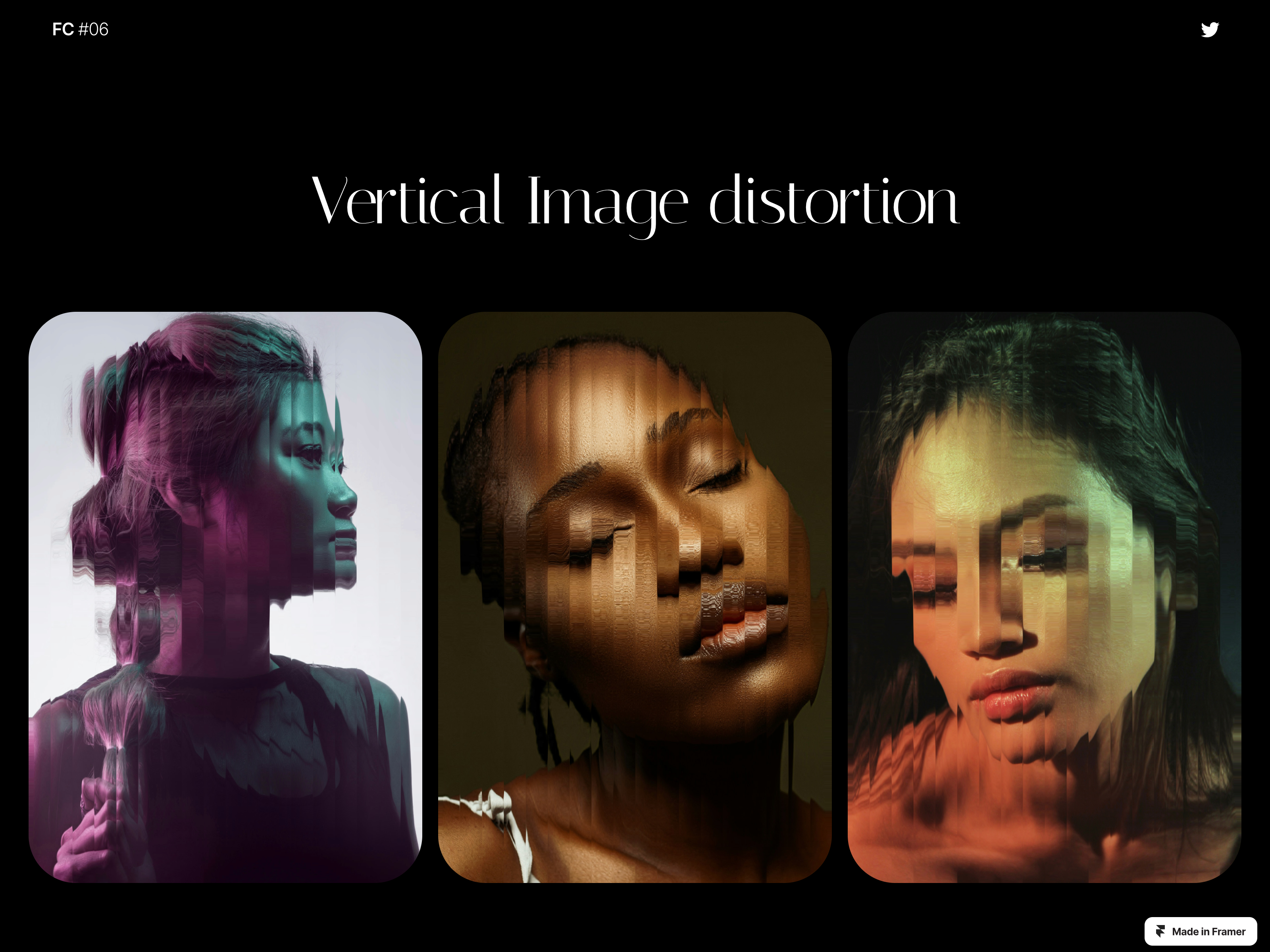 A webGL component featuring a Vertical Image Distortion. You can customize the pause duration, the effect duration, the strength distortion and the speed wave effect Stack : React & React Three Fiber. LIVE DEMO Refund Policy Due to the nature of digital products and Framer, there are no refunds once a purchase is made. We recommend reviewing the product details and any available previews carefully before making a purchase.
